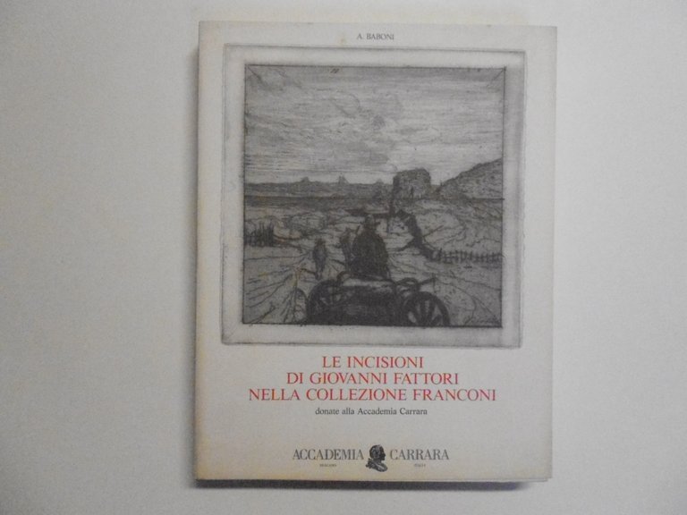A. Baboni, Le Incisioni di Giovanni Fattori Nella Collezione Franconi Accademia Carrara, Bergamo, 1989; cm 27,5x21,5; pp. 62 + 234 ill. numerate f. t. in b. n. Cartoncino rigido edit. bianco muto con sovraccoperta edit. fig. in b. n. Condizioni di conservazione Esemplare in ottime condizioni. Quasi allo stato di nuovo. Qualche trascurabile macchietta al dorso della coperta e alla sovraccoperta. SETT24.L22795G