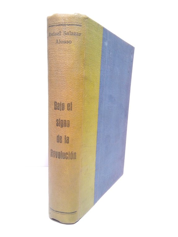 [PRIMERA EDICION].- Madrid: Librería de Roberto de San Martín (Tip. de Sáez Hermanos), 1935.- 357 p., [1 h.]; 4º menor (20,2 x 14,5 cm); Tela Cartoné.* Excelente estado. Rafael Salazar Alonso escribió esta obra en 1935, en la que relata su experiencia como Ministro de la Gobernación durante los gobiernos republicanos de Ricardo Samper y Alejandro Lerroux en 1934. El libro nos da un testimonio directo de los problemas políticos y sociales de la Segunda República Española, especialmente en relación con los movimientos revolucionarios y separatistas. La publicación fue polémica desde su aparición. El gobierno centrista de Portela Valladares ordenó su secuestro judicial debido a las críticas que contenía hacia figuras como el presidente de la República, Niceto Alcalá Zamora. Rafael Salazar Alonso fue detenido en agosto de 1936 y ejecutado poco después por el Gobierno del Frente Popular. Durante su juicio, el contenido de Bajo el signo de la Revolución fue utilizado como prueba en su contra, a pesar de la amnistía previamente concedida. POLÍTICA ESPAÑOLA DESDE 1833 A 1936