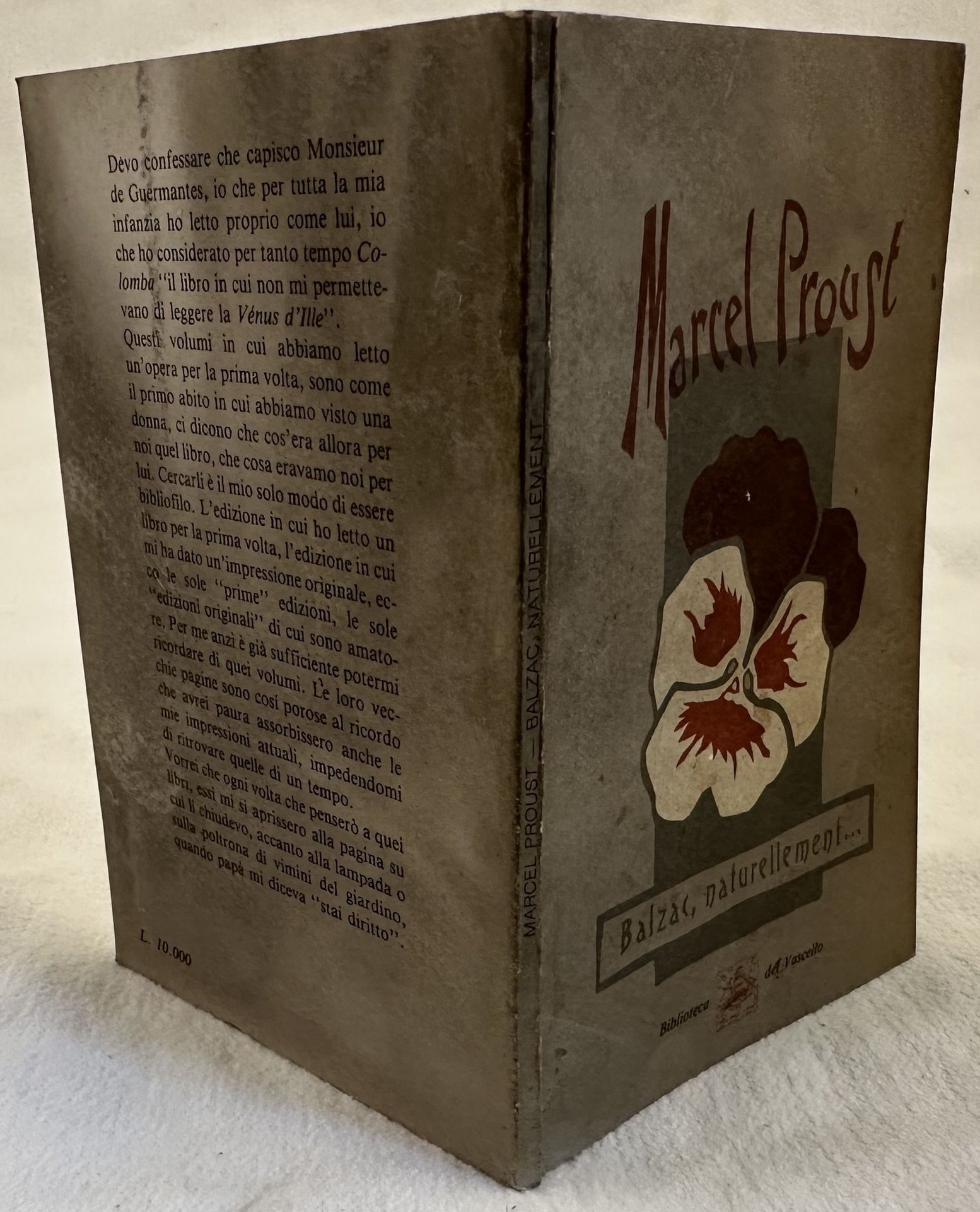 Edizione del 1990 della collana "Frammenti della Biblioteca del Vascello" di questo frammento che Marcel Proust eliminò dalla versione definitiva della Recherche. Testo francesce con traduzione italiana a fronte. Quattro disegni dell'autore a piena pagina. In buone condizioni. Copertina editoriale in buone condizioni generali con usure e mancanze ai margini e dorso. Macchie. Legatura in buone condizioni. Pagine in ottime condizioni. In 24. cm 14,5x9,5. Pp. 52+(4).Edition of 1990 of the series "Frammenti della Biblioteca del Vascello" of this fragment that Marcel Proust canceled from the definite version of Recherche. French text with italian translation. Four full page drawings of the author. In good conditions. Editorial cover in good conditions lightly worn with lackings in the extremities. Stains. Binding in good conditions. Pages in very good conditions. In 24. cm 14,5x9,5. Pp. 52+(4).