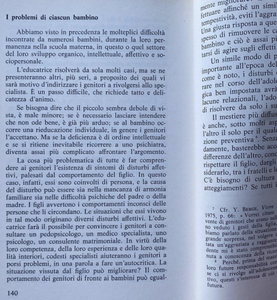 Soggetti: Scuola materna, Fanciulli, Sviluppo psicomotorio, Critica didattica, Istruzione elementare, Pedagogia, Educazione, Bambini, Asilo, Nido, Primaria, Infanzia, Sviluppo psichico, Crescita, Pensiero pedagogico, Metodi educativi, Maestri, Docenti, Attività scolastiche, Gioco, Lavoro, Creatività, Socializzazione, Fantasia, Manualità, Maria Montessori, Aldo Agazzi, Scuole materne, Insegnanti, Educatori, Attività fisica, Gruppi, Classi, Famiglia, Ambiente sociale, Genitori, Inserimento, Accoglienza, Integrazione, Comportamento, Personalità, école maternelle, Attività ludico-motorie, Attività manuale, Educare, Disegno, Fiabe, Favole, Psicomotricità, L'enfant, Paidoguides, Psicologia, Infanti, Un anno, Due anni, Tre anni, Quattro anni, Consultazione, Riferimento, Bibliografia, Cultura, Tradizioni culturali, Pubblica istruzione, Ministero, Pedagogisti francesi, Scuola francese, Francia, Europa, Don Bosco, Éducation, Pédagogie, Psychologie, Metodi attivi, Apprendimento, Frequenza, Ritmo di crescita, Intelligenza, Attenzione, Esercizi, Stanchezza, Evoluzione, Sicurezza, Spazio, Timidezza, Socializzazione, Relazioni, Linguaggio, Correzione, Altezza, Stare in piedi, Gattonare, Camminare, Posizione eretta, Equilibrio, Esigenze, Bisogni, Noia, Coordinazione, Sezioni miste, Piccoli, Maturità, Età scolastica, Aula, Manipolazioni, Movimento, Burattini, Illustrazioni, Disegni, Libri illustrati, Classi, Adulti, Maturità, Emotività, Attrezzi, Argilla, Merenda, Giochi, Cortile, Disabilità, Abilità, Disturbi, Carenze affettive, Responsabilità, Libri Vintage Fuori catalogo, Saggistica, Giochi, Giocare, Autorevolezza, Berge, Mucchielli, Compagni, Eccitabilità, Sonno, Riposo, Fiducia, Kindergarten, Children, Psychomotor development, Didactic criticism, Elementary education, Pedagogy, Education, Kindergarten, Kindergarten, Primary, Childhood, Psychic development, Growth, Pedagogical thinking, Educational methods, Teachers, Teachers, School activities, Game, Work, Creativity, Socialization, Fantasy, Manual skills, Kindergartens, Teachers, Educators, Physical activity, Groups, Classes, Family, Social environment, Parents, Insertion, Reception, Integration, Behavior, Personality, Playful-motor activities, Manual activity, Educate, Fairy tales, Fables, Psychomotricity, Psychology, Infants, One year, Two years, Three years, Four years, Consultation, Reference, Bibliography, Culture, Cultural traditions, Public education, Ministry, French pedagogists, French school, France, Europe, Methods Active, Learning, Frequency, Growth rate, Intelligence, Attention, Exercises, Tiredness, Evolution, Safety, Space, Shyness, Socialization, Relationship i, Language, Correction, Height, Standing, Crawl, Walk, Standing, Balance, Needs, Needs, Boredom, Coordination, Mixed sections, Little, Maturity, School age, Classroom, Manipulations, Movement, Puppets, Illustrations, Drawings, Picture books, Classes, Adults, Maturity, Emotionality, Tools, Clay, Snack, Games, Backyard, Disability, Skills, Disorders, Affective deficiencies, Responsibility, Out of print books, Non-fiction, Games, Play, Authority, Companions, Excitability, Sleep, Rest, Trust