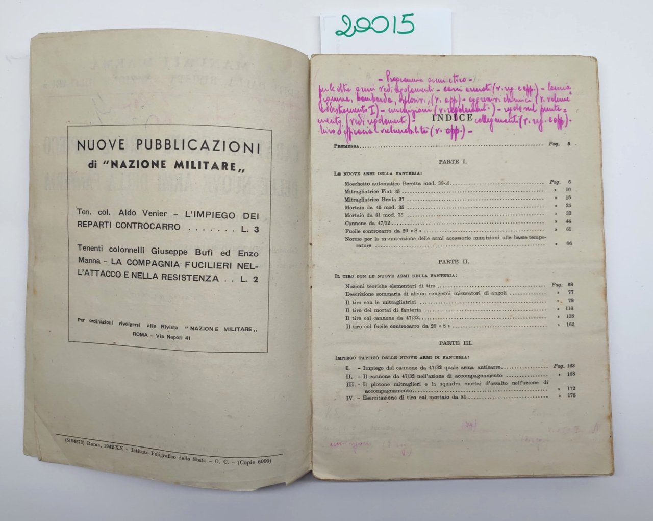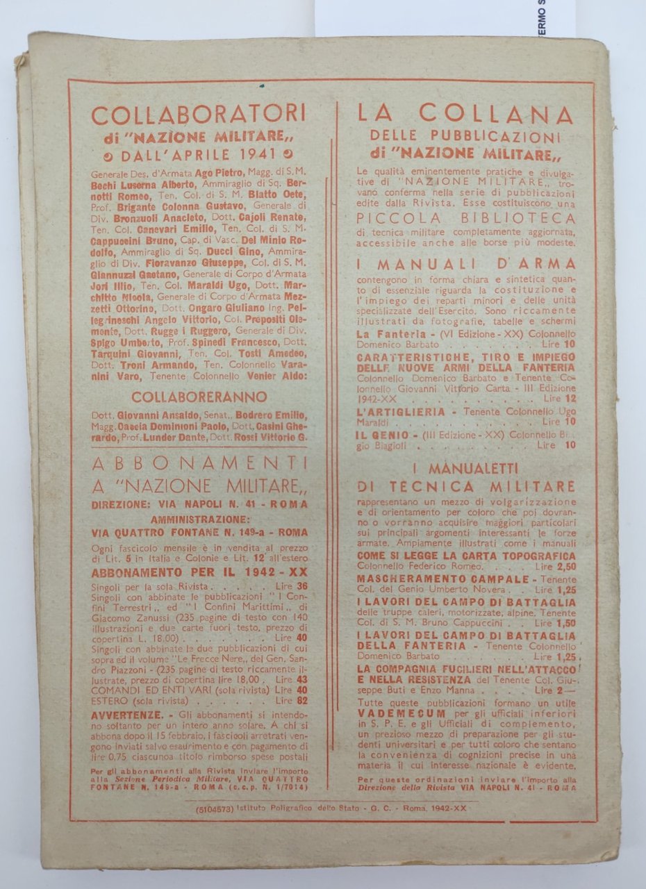 Barbato Carta Caratteristiche tiro e impiego delle nuove armi della fanteria Ministero della Guerra 1942