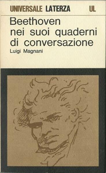 240 p., [6] p. di tav. : ill. ; 18 x 11 cm. Universale Laterza, 135. Nei suoi ultimi anni, costretto dalla sordità a comunicare per iscritto con visitatori e amici, Beethoven si servì di quaderni. Così ci sono state tramandate la cronaca della sua vita, le notizie degli avvenimenti artistici di cui fu protagonista, le testimonianze del suo interesse per la letteratura e la filosofia, la sua partecipazione ai problemi politici e sociali del tempo. Magnani ha per primo interpretato criticamente questi testi, delineando un quadro completo della personalità del musicista. Brossura editoriale, copertina in cartoncino flessibile, illustrata a colori. Codice libreria 7889.