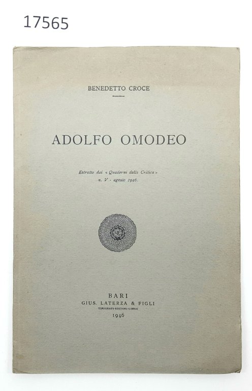 Benedetto Croce Adolfo Omodeo estratto Laterza 1946