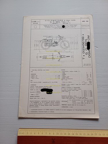 Benelli 50 Trial 1968 Facsimile originale scheda omologazione DGM Motorizz.