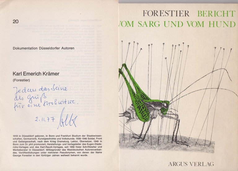 Bericht vom Kind, vom Sarg und vom Hund. Lebenslauf für Freunde (Signiert!).