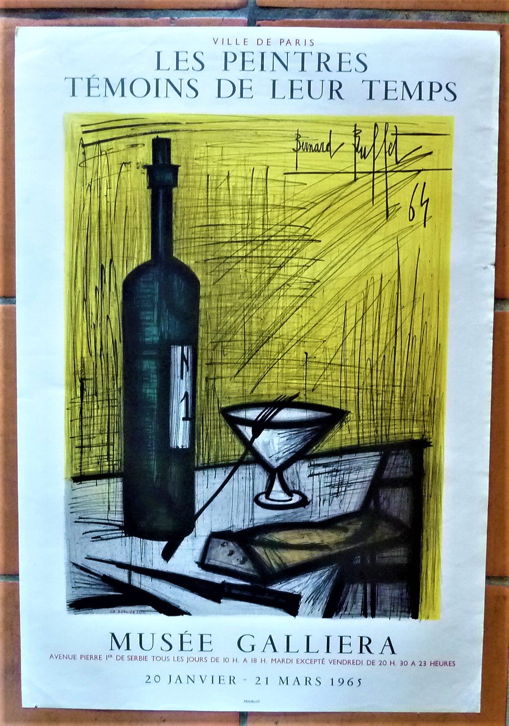 Bernard Buffet. Une seule affiche éditée à l'occasion de l'exposition "Les Peintres Témoins de leur Temps"; au Musée Galliera du 20 janvier au 21 mars 1965.