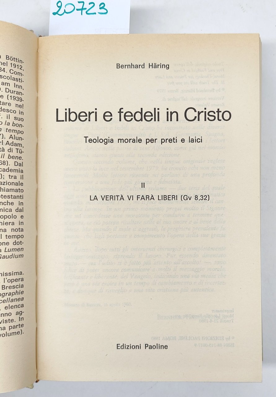 Bernhard Haring Liberi e fedeli in Cristo due volumi Edizioni Paoline 1979-1980