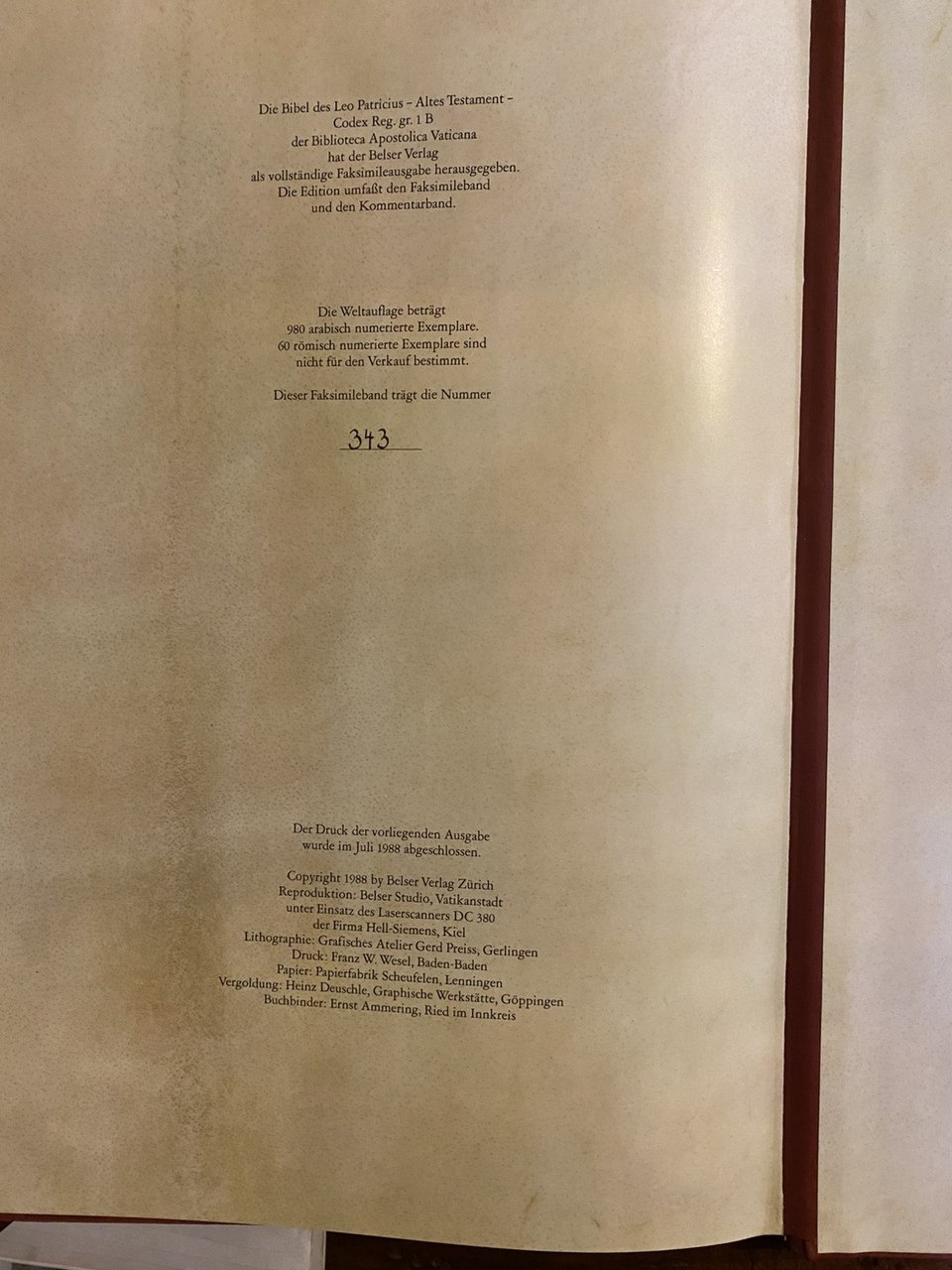 Edizione di 980 esemplari numerati Esemplare numero 343 1 volume di facsimile in 4° con 2 fermagli metallici Legatura in tutta pelle in cofanetto Allegato 1 volume In 8° di commento in italiano Ottimo stato