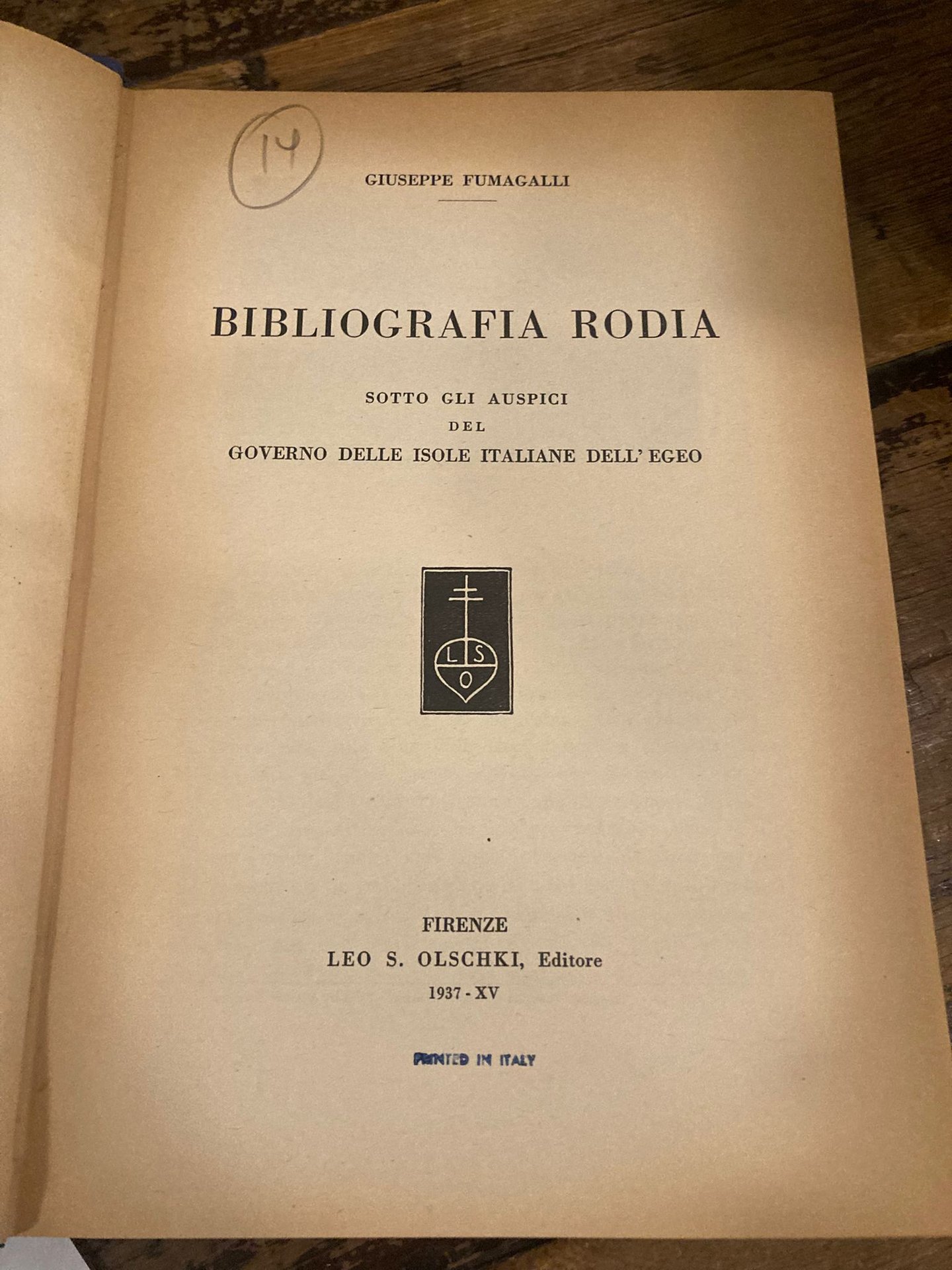 Bibliografia Rodia. Sotto gli auspici del Governo delle Isole Italiane dell' Egeo