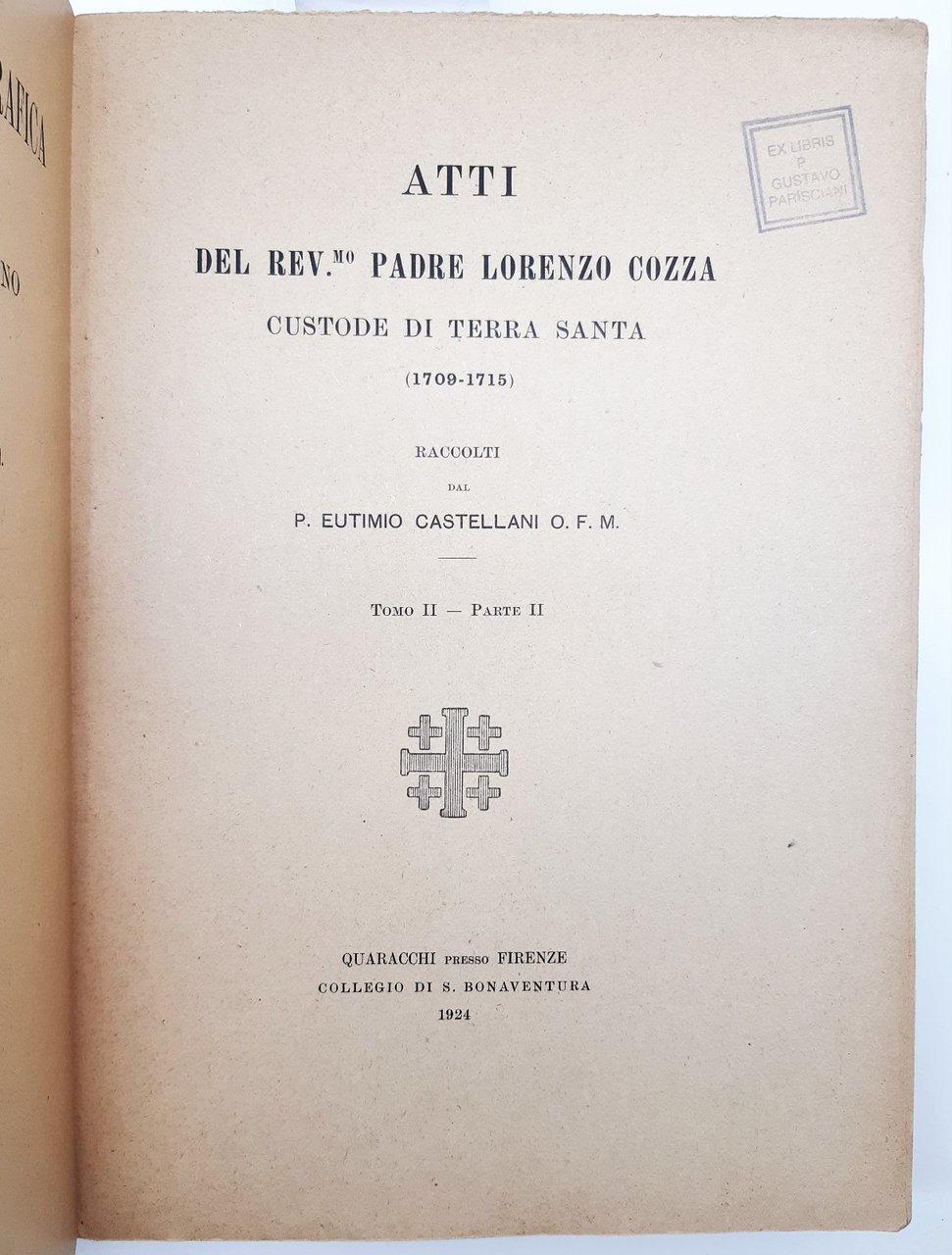 Biblioteca Bio Bibliografica Della Terra Santa Atti Del P. Lorenzo Cozza 1924