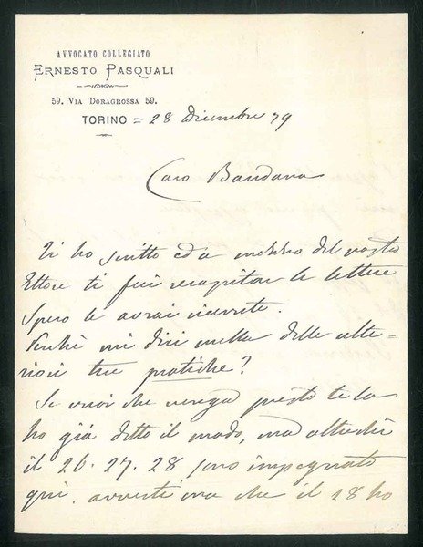 <p>14x10 cm, biglietto ripiegato su carta intestata datata Torino 28 Dicembre 1979. 15 righe di carattere professionale.</p>