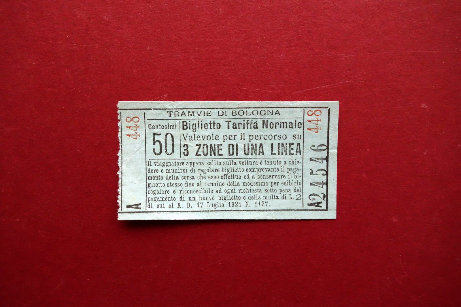 Biglietto del Tram Tramvie di Bologna Tariffa Normale 3 Zone Primi del '900