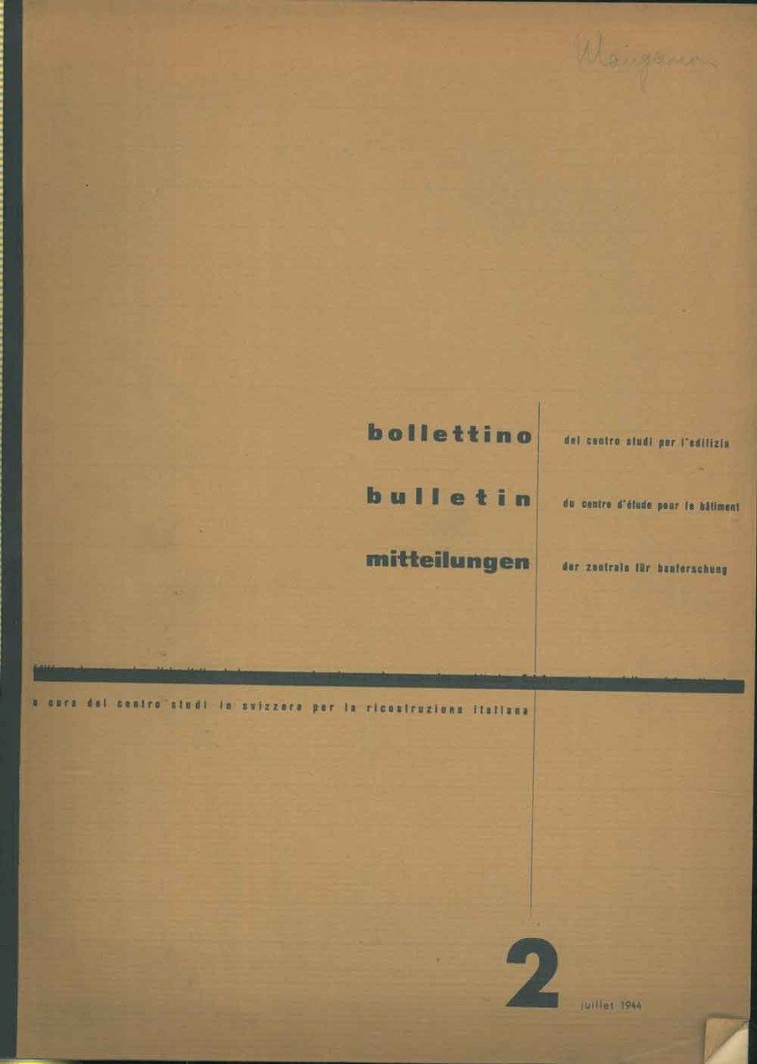 Bollettino del centro studi per l'edilizia. 2, juillet 1944. Testi di: A. Roth, F. Gampert, G. Minoletti, A. Pastorelli