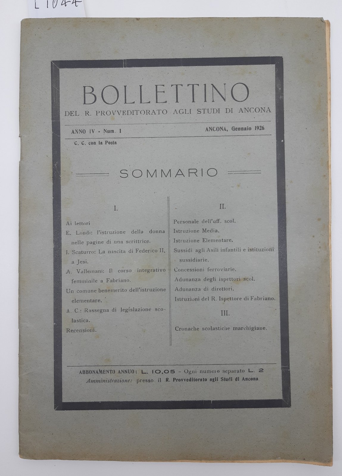 Bollettino del R. Provveditorato agli studi di Ancona gennaio 1926 numero 1