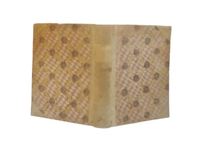 legatura settecentesca in mezza pergamena e piatti in carta decorata tagli gialli