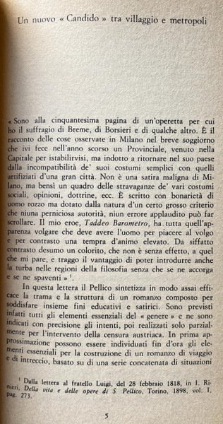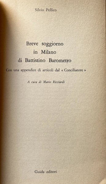 BREVE SOGGIORNO IN MILANO DI BATTISTINO BAROMETRO. A CURA DI MARIO RICCIARDI | Libros antiguos y modernos | Silvio Pellico