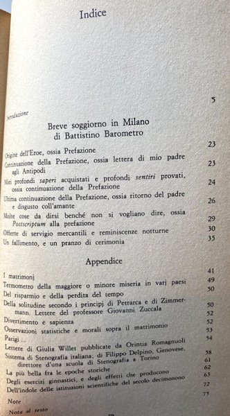 Soggetti: Viaggi, Guide letterarie, Milano, Cultura, Storia, Aneddoti, Vita urbana, Letteratura italiana, Narrativa satirica, Umorismo, Romanzo comico, Romanzo Sociale, Candido, Città, Metropoli, Ottocento, Matrimonio, Petrarca, Zimmermann, Zuccala, Istituzioni, Giulia Willet, Filippo Delpino, Parigi, Fiction, Risorgimento, Lettere, Patrioti italiani, Romanzi storici, Libri Vintage Fuori catalogo, Provincia, Candide, Villaggio, Metropoli, Taddeo, Usi e costumi locali, Censura austriaca, Bildungsroman, Anti-formalismo, Borghesia, Formazione, Critica, Crusca, Cultura accademica, Vecchia educazione borghese, Società, Scuola di stenografia, Ginnastica, Risparmio, Vita quotidiana, Divertimento, Sapienza, Intellettuali, Cerimonie, Polemiche, Chicche librarie, Travel, Literary guides, Milan, Culture, History, Anecdotes, Urban life, Italian literature, Satirical fiction, Humor, Comic novel, Social novel, Cities, Metropolis, Nineteenth century, Marriage, Institutions, Paris, Risorgimento, Letters, Italian patriots, Novels historical, Out of print books, Province, Village, Metropolis, Local customs and habits, Austrian censorship, Bildungsroman, Anti-formalism, Bourgeoisie, Education, Criticism, Bran, Academic culture, Old bourgeois education, Society, School of shorthand, Gymnastics, Savings, Daily life, Fun, Wisdom, Intellectuals, Ceremonies, Controversies, Book goodies