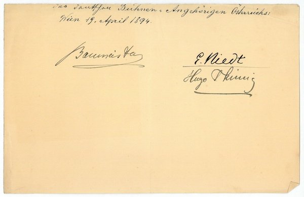 ½ S. Qu.-8vo. Mit je einer weiteren U. von Bernhard Baumeister und Hermann Thimig.