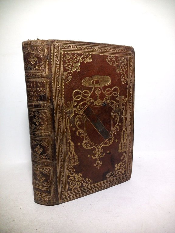 In Roma: Per il Bernabò, MDCCXVII [1717]. Con Licenza de' Superiori.- [12 h.], 222 p., [1 h.]: Con un retrato de Fr. Francisco del Niño Jesús, grabado al cobre finamente; 8º (17,6 x 11,6 cm); Excelente impresión sobre fuerte y blanco papel verjurado; Enc. en Plena Piel época (siglo XVIII), con el lomo cuajado en oro y planchas doradas en ambas tapas con escudo episcopal en el centro, cortes dorados.* Salvo pequeñas rozaduras, que han sido restauradas, el libro se encuentra en magnífico estado. RARA OBRA SOBRE ESTE GRAN BEATO ESPAÑOL DEL SIGLO XVI. Nació en 1544, con el nombre de Francisco Pascual Sánchez, en VILLAPALACIOS, perteneciente a la comarca albaceteña de la Sierra de Alcaraz. Al parecer fue un joven bastante rústico y poco dado a los estudios, teniendo sus padres que emplearlo como pastor. Hacia 1566, con poco más de veinte años de edad, tuvo una desgraciada pelea con un guardamontes, al que mató por accidente. Esto le obligó a marchar de su pueblo por miedo a la justicia. Mediante la ayuda de un pastor de la Alcarria que volvía a su tierra, termino por fin en la Villa de Alcalá, donde tuvo que mendigar, siendo alojado caritativamente en uno de los mesones de esta famosa villa. Fue aquí donde tuvo lugar un hecho que cambiaría su vida: entró en la Iglesia Magistral quedando impresionado por ella. Pasaba allí tantísimo tiempo, que al final le ofrecieron trabajo de monaguillo y de ayudante del campanero y del sacristán; pero dadas sus pocas luces intelectuales acabaron por despedirlo. Más tarde estuvo en el Hospital de Antezana, al que llegó el día 1 de agosto de 1566 para sustituir a un enfermero que había fallecido. En esta ocupación fue más afortunado, ya que estuvo trabajando durante treinta años, realizando los trabajos más bajos como barrer y lavar a los enfermos. Mientras tanto él rezaba mucho y pedía limosna a todo aquel que tuviese dinero, llegando incluso hasta el propio rey Felipe II. También se preocupó muchísimo por las prostitutas, por lo que compró en 1580 un edificio en Alcalá donde reunió a muchas de éstas que querían dejar el oficio, realizando así una labor social encomiable. Murió en el convento de San Hermenegildo de Madrid el 26 de diciembre de 1604. Fue enterrado en la iglesia de este convento, no sin hacerse en su honor unas importantes pompas fúnebres, celebradas también en Alcalá y en Valencia. HISTORIA DE LA IGLESIA CATÓLICA, PATRÍSTICA Y PENSAMIENTO CATÓLICO EN GENERAL