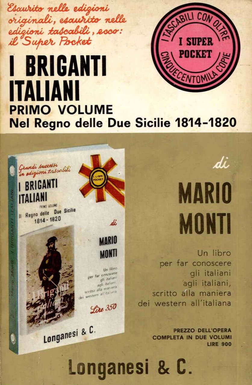 I BRIGANTI ITALIANI. VOL. 1 - IL REGNO DELLE DUE SICILIE 1814-1820 - VOL. 2 - IL MEZZOGIORNO 1861-1864. MILANO LONGANESI, POCKET, In 16� due volumi 316, 286 pp. Opera completa, figure e vicende di alcuni celebri briganti dell'800. Interessante rievocazione. Brossura editoriale illustrata.