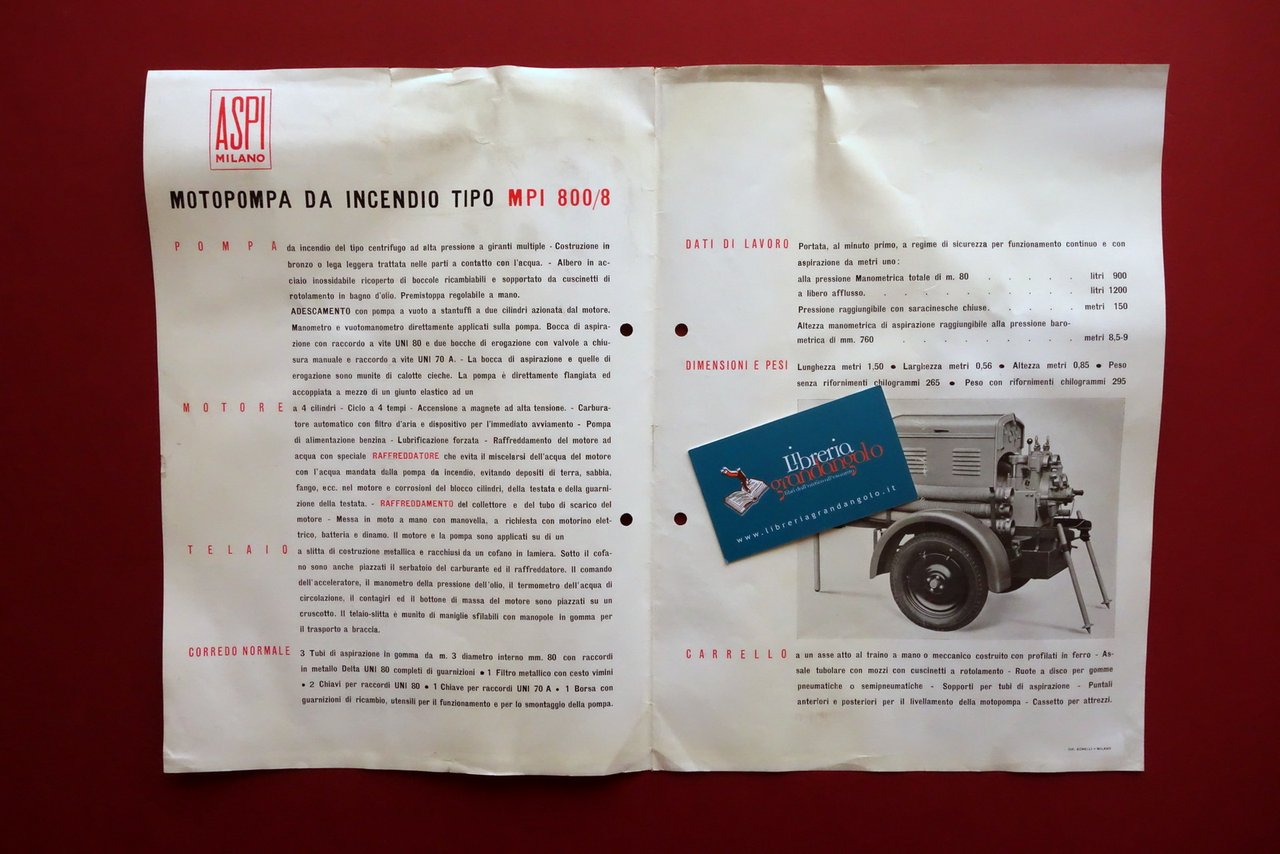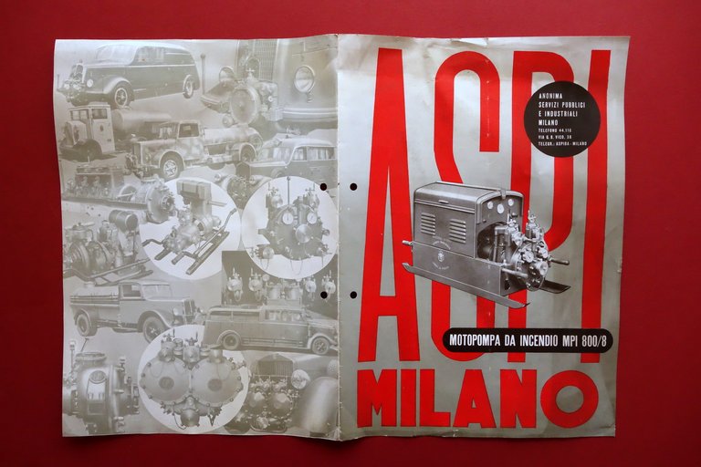 Brossura Pubblicitaria ASPI Milano Motopompa da Incendio MPI 800/8 Anni '40