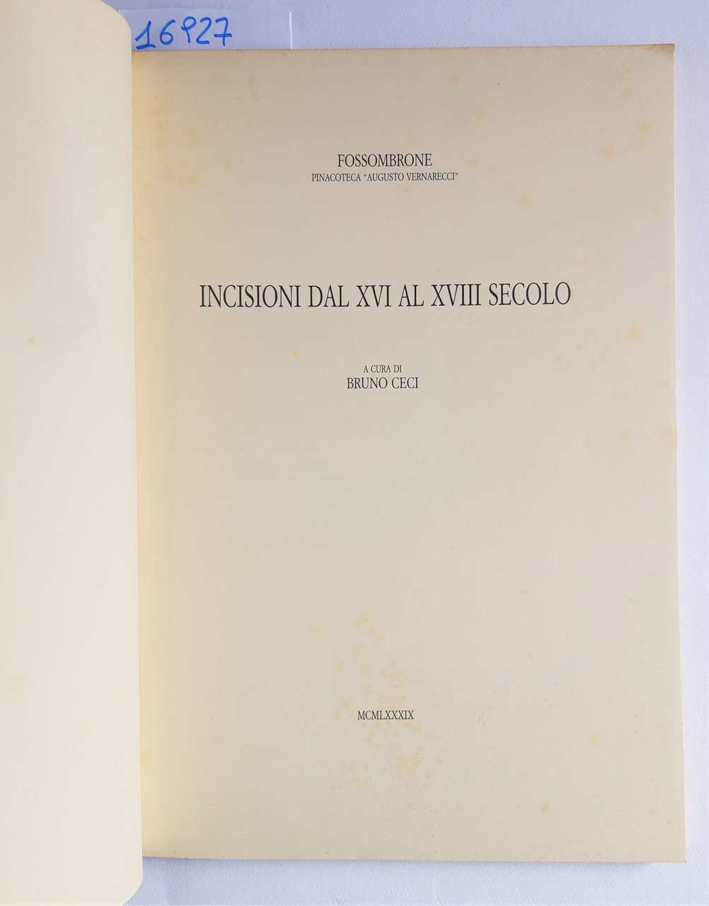 Bruno Ceci Incisioni dal XVI al XVIII secolo Fossombrone 1989