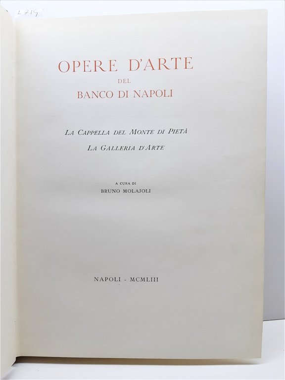 Bruno Molajoli Opere d'arte del Banco di Napoli La cappella del Monte di Piet‡ La galleria d'arte Napoli 1953