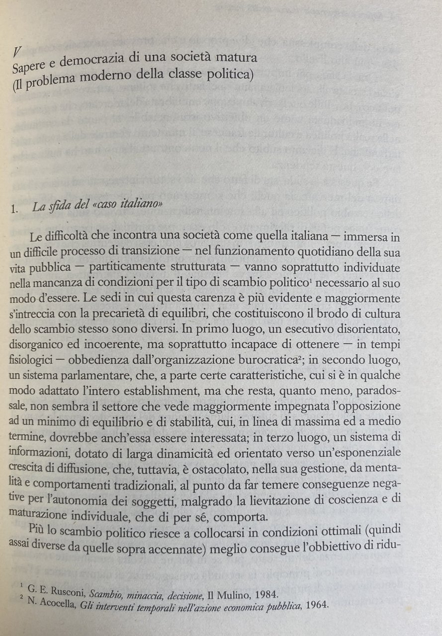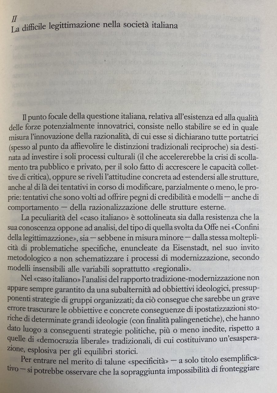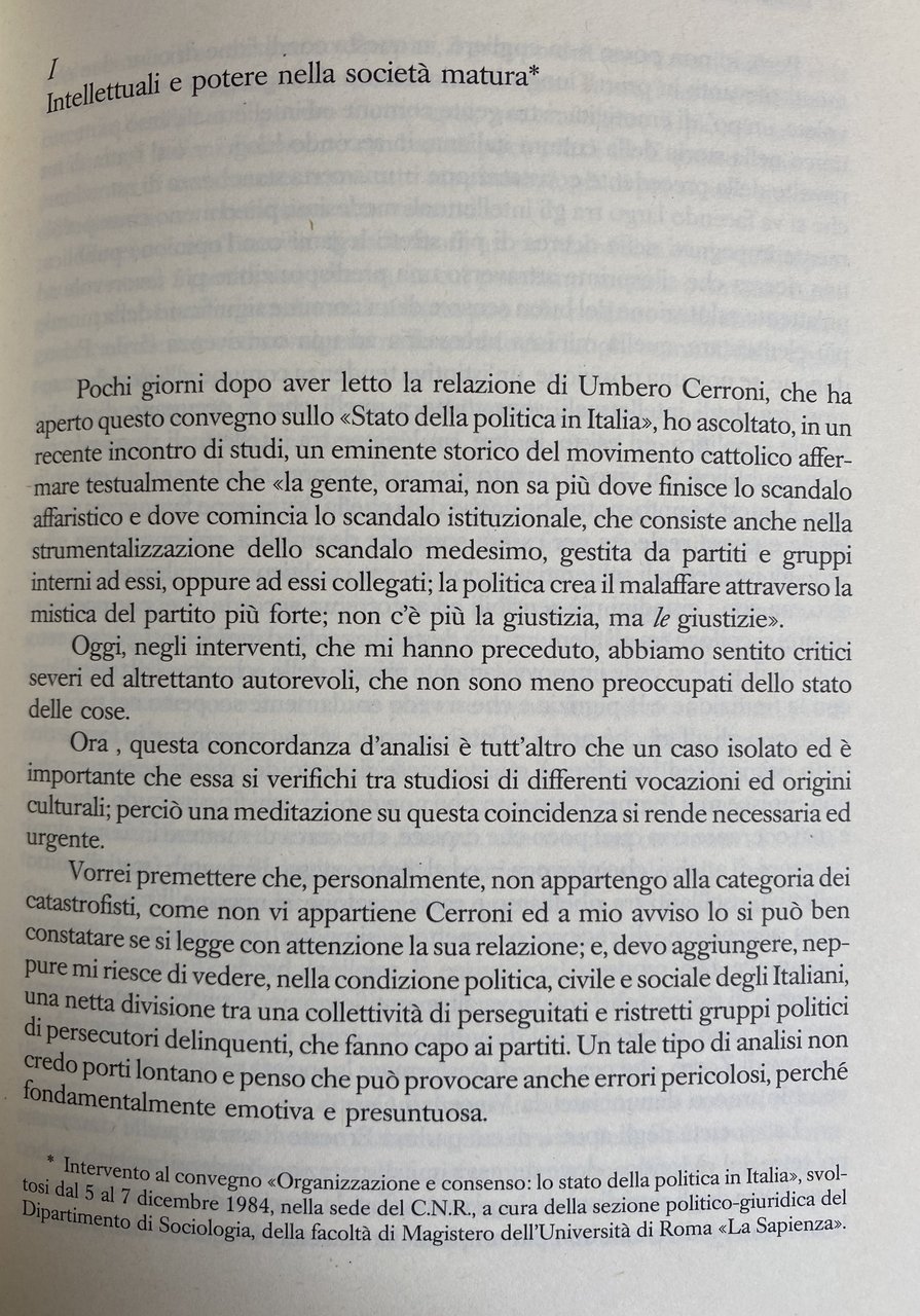 Soggetti: Intellettuali Potere Sociologia Legittimazione Società matura italiana Transizione Classe dirigente Modernizzazione Sapere Democrazia Politica Scienze sociali Attualità Saggistica Libri rari fuori catalogo Analisi sociologica Cultura Istruzione Mass Media Amendola Antonio Gramsci Benedetto Croce Borghesia Cattolicesimo Classi dirigenti Coscienza Crisi Dialettica Estetica Etica Fascismo Filosofia Giaime Pintor Giolitti Giudizio Goethe Governo Hegel Ideologia Letteratura Liberale Libertà Linguaggio Marxismo Sinistra Destra Materialismo storico Questione meridionale Morale Nazionalismo Nietzsche Pensiero Polemiche Responsabilità Partiti politici Dibattiti Partecipazione Collettività Ardigò Seminari Convegni Lezioni Cacciari Vattimo Asor Rosa Umberto Eco Salvatore Veca Conflitti Post-comunismo Lotta di classe Conflittualità Pizzorno Gruppi di pressione Vita pubblica Keynes Economia Capitalismo Globalizzazione Controcultura Complessità Corporativismo Radicalismo Consenso Contestazione Comportamenti Comunicazione Chiesa Ideologie Relativismo Costituzione Censis Mutamento sociale Carisma Caso italiano Collettivismo Contraddizioni Credibilità Establishment Disagio Istituzioni Percezione Potere giudiziario Delegittimazione Pubblico Sistema Soggettività Subcultura Teoria sistemica Riforme Intellectuals Power Sociology Legitimacy Mature Italian society Transition Ruling class Modernization Knowledge Democracy Politics Social sciences Current affairs Non-fiction Rare books out of print Sociological analysis Culture Education Bourgeoisie Catholicism Classes Consciousness Crisis Dialectic Aesthetics Ethics Fascism Philosophy Judgement Government Ideology Literature Liberal Freedom Language Marxism Left Right Historical materialism Southern question Morality Nationalism Thought Polemics Responsibility Political parties Debates Participation Collectivity Seminars Conferences Lessons Conflicts Post-communism Struggle Conflict Pressure groups Public life Economy Capitalism Globalization Counterculture Complexity Corporatism Radicalism Consensus Contestation Behaviors Communication Church Ideologies Relativism Constitution Change Charisma Collectivism Contradictions Credibility Discomfort Institutions Perception Judicial Delegitimization System Subjectivity Subculture Systemic Theory Reforms
