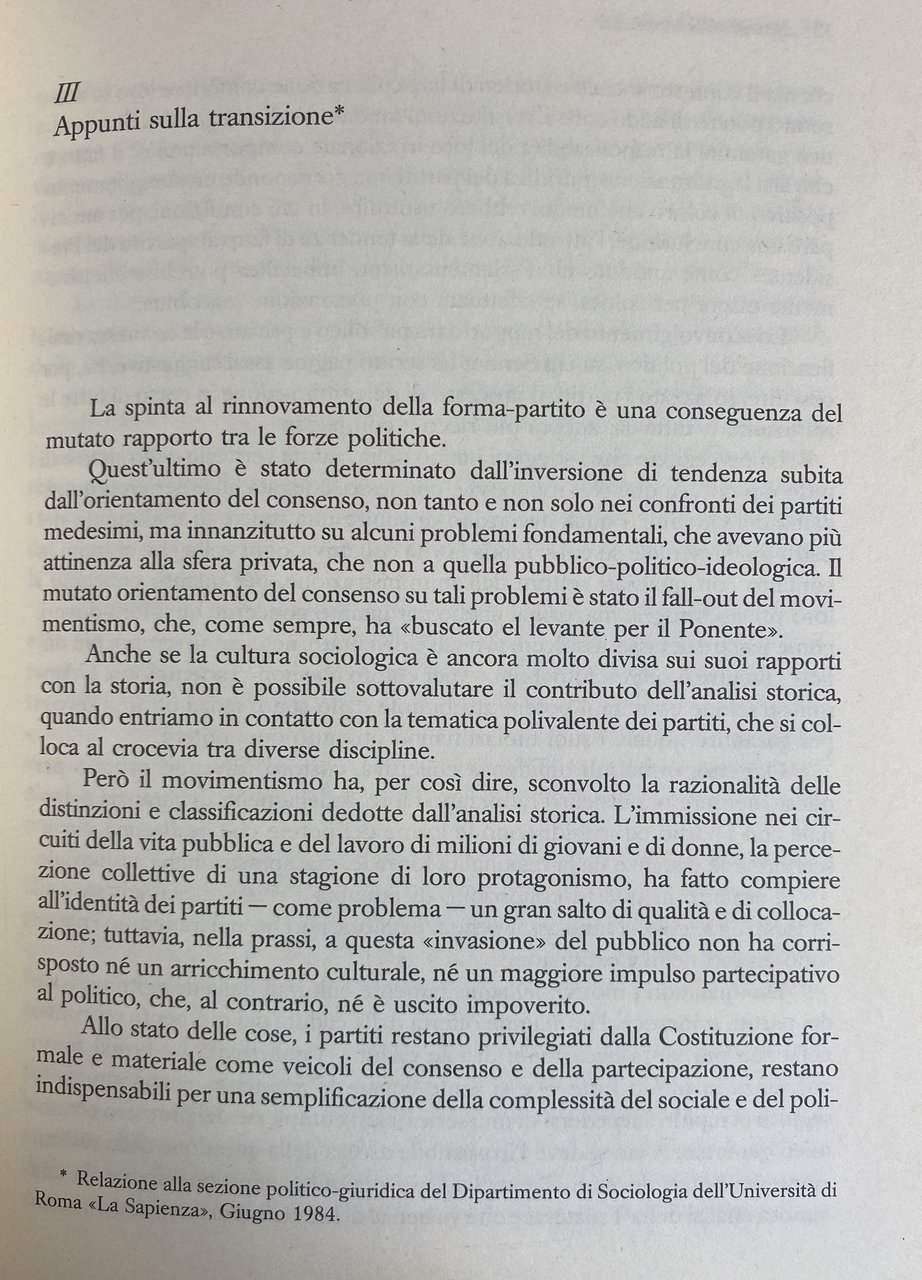 - Intellettuali, Potere, Sociologia, Legittimazione, Società, Politica italiana, Transizione, Classe dirigente, Modernizzazione, Democrazia, Politica, Scienze sociali, Attualità, Saggistica, Libri fuori catalogo, Analisi sociologica, Cultura, Borghesia, Cattolicesimo, Classi dirigenti, Crisi, Dialettica, Governo, Ideologia, Linguaggio politico, Sinistra, Destra, Partiti politici, Dibattiti, Partecipazione, Collettività, Conflitti sociali, Conflittualità, Gruppi di pressione, Vita pubblica, Controcultura, Complessità, Corporativismo, Radicalismo, Consenso, Contestazione, Comportamenti, Comunicazione, Relativismo, Istituzioni, Subcultura, Comunicabilità, Comunicazione politica, Dialogo, Teoria sistemica