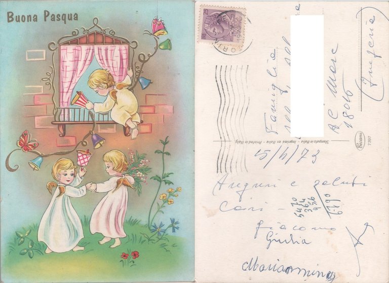 Buona Pasqua. Angioletti. Viaggiata 1973