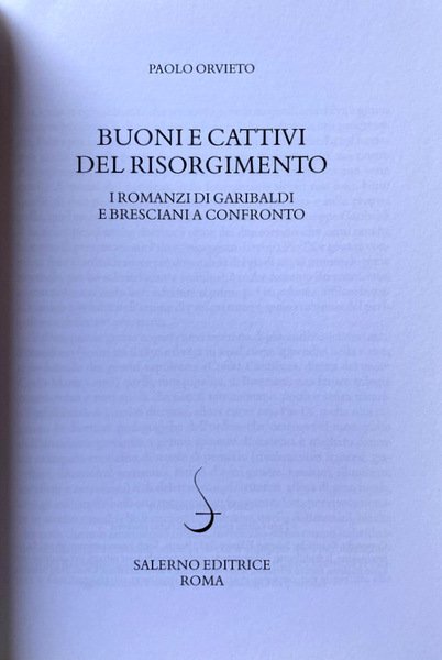 BUONI E CATTIVI DEL RISORGIMENTO. I ROMANZI DI GARIBALDI E BRESCIANI A CONFRONTO | Libros antiguos y modernos | Paolo Orvieto