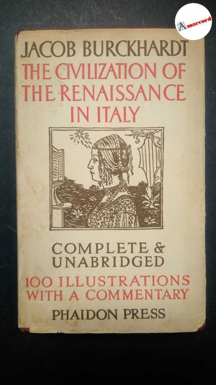 Burckhardt Jacob, The civilization of the renaissance in Italy, Phaidon,1950, in-16, rilegato a tutta tela con sovraccopertina, pp462, illustrazioni b/n a profusione f.t. Testo in lingua inglese.