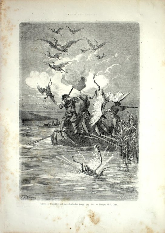 Caccia ai fenicotteri sul lago d'Albufera. Stampa 1864