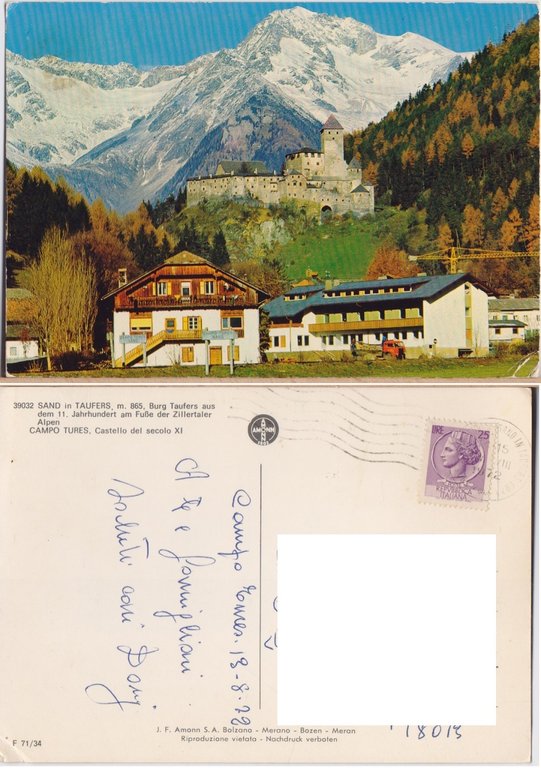 Campo Tures. Castello del secolo XI. Viaggiata 1972