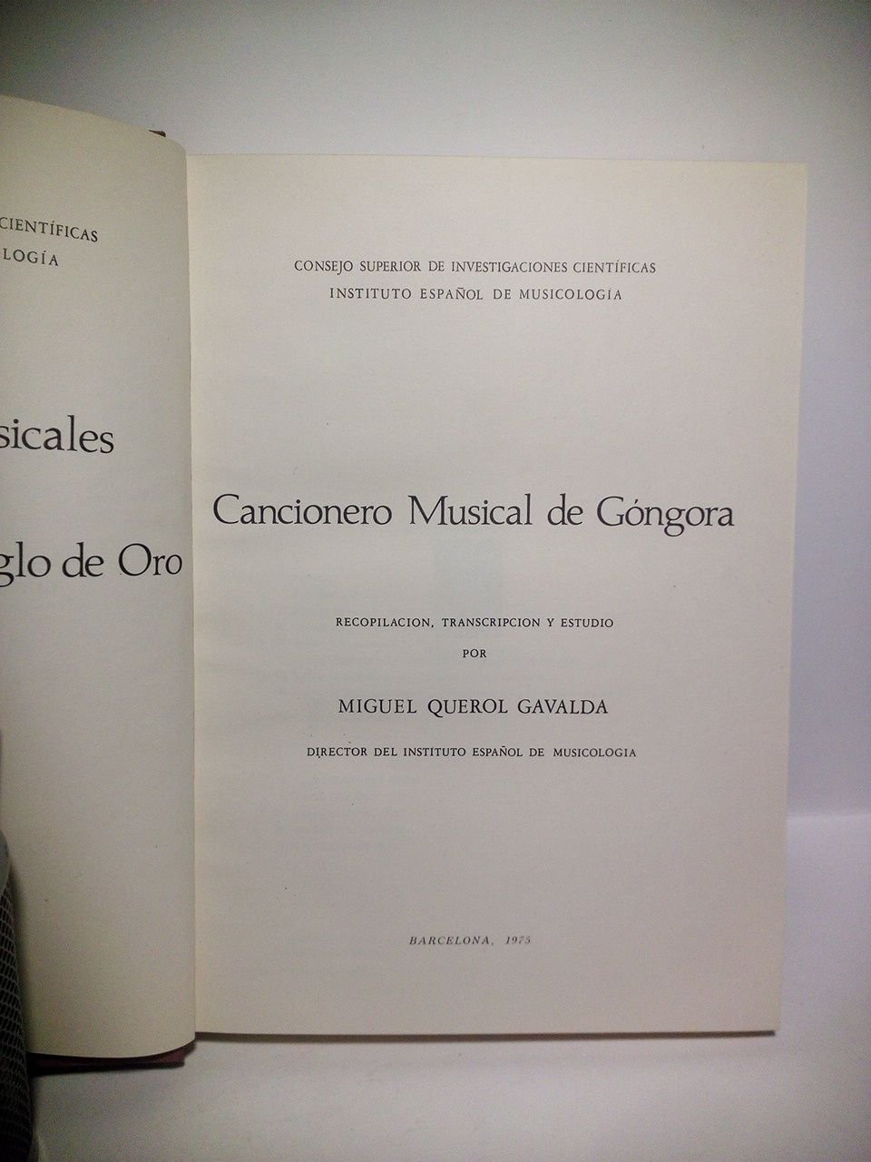Barcelona: C.S.I.C., Instituto Español de Musicología, 1975.- 102,149 pp.: Ilustrado con pentagramas; 4º mayor (28,5 x 20,2 cm); Enc. en tela, tejuelo.- (Cancioneros Musicales de Poetas Españoles del Siglo de Oro. 1).* La encuadernación algo sucia. Interior muy bien. MÚSICA, DANZA, INSTRUMENTOS MUSICALES Y DISCOGRAFÍA
