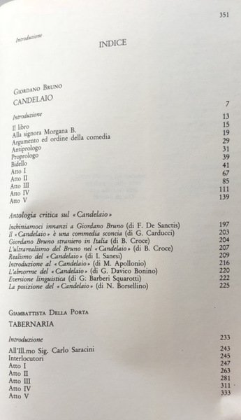 Titolo: Candelaio di Giordano Bruno; Tabernaria di Giambattista Della Porta