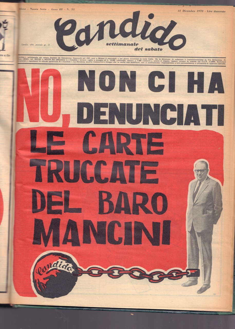 Candido-settimanale del sabato-Guareschi-Anno 1970 completo e rilegato