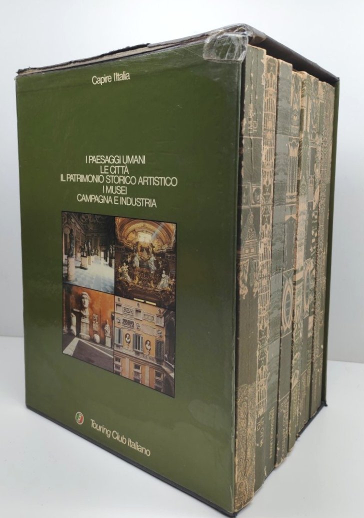 I paesaggi umani, Le città, Il patrimonio storico artistico, I musei, Campagna industria cofanetto rigido editoriale riparata al margine superiore con il nastro adesivo con una rottura che si estende su tutto il lato, dorso dei volumi brunito con alcune lievi abrasioni, alcune lievi fioriture alle pagine interne che non vanno disturbare la lettura, numero pagine 224 + 207 + 224 + 239 + 239 + 190 + 240 + 208 + 220 dimensioni cm 30 x 22 x 17,2