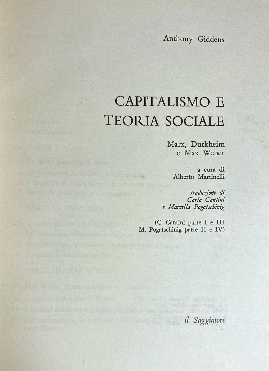 CAPITALISMO E TEORIA SOCIALE. MARX, DURKHEIM E MAX WEBER | Libros antiguos y modernos | Anthony Giddens, Alberto Martinelli, Carla Cantini, Marcella Pogatschinig