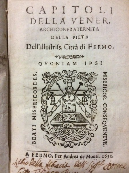 CAPITOLI DELLA VENER. ARCHICONFRATERNITA DELLA PIETA' DELL'ILLUSTRISS. CITTA' DI FERMO.