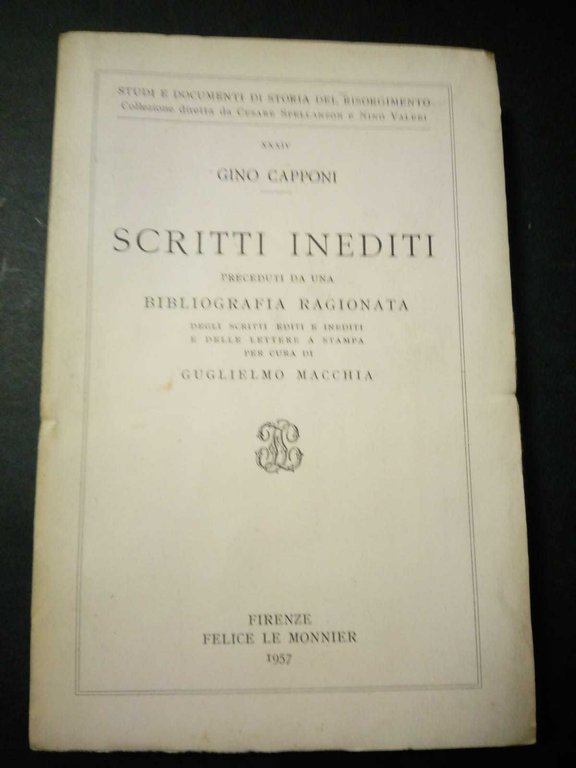 Capponi Gino. Scritti inediti. Felice Le Monnier. 1957