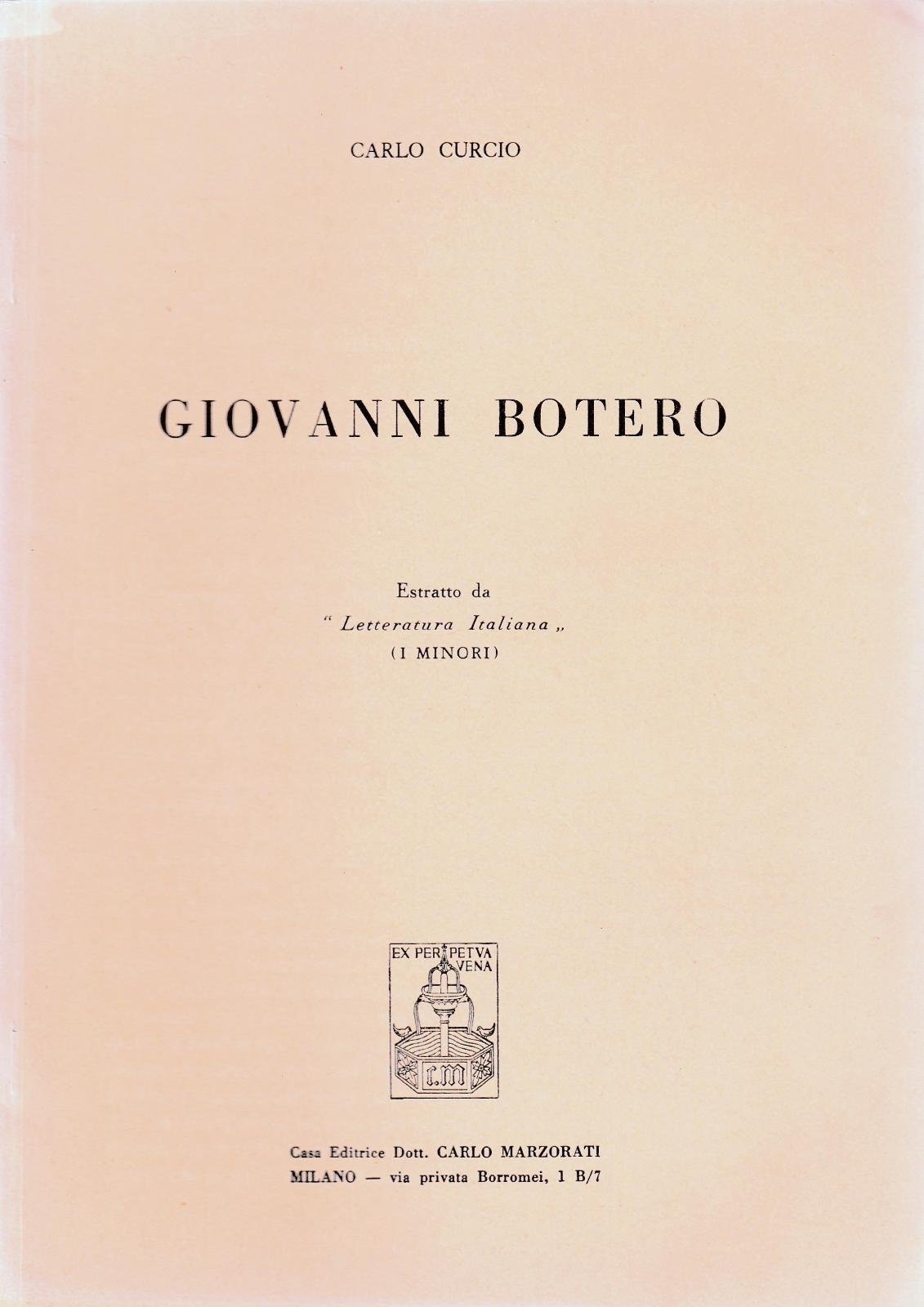 Carlo Curcio Giovanni Botero Estratto Ed. Marzorati Milano -L4602