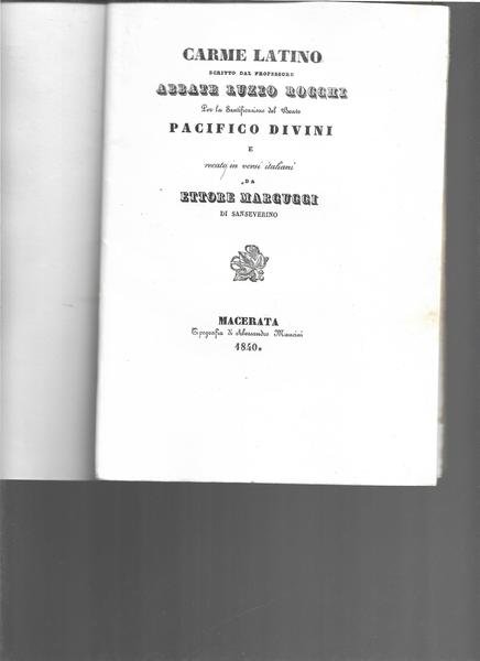Carme latino per la santificazione del b.Pacifico Divini e recato in versi italiani da Ettore Marcucci da Sanseverino.