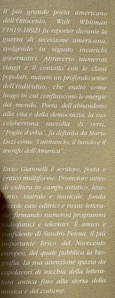 Poeta romantico dell’abbandono alla vita, Walt Whitman fu reporter durante la guerra di secessione americana. Attraverso numerosi viaggi e il contatto con le classi popolari maturò un profondo senso dell’individuo, che esaltò come luogo in cui si compendiano le energie del mondo. La sua raccolta poetica Foglie d’erba, apparsa in molte edizioni dal 1855, fu ritenuta scandalosa.