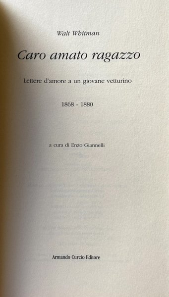 CARO AMATO RAGAZZO. LETTERE D'AMORE A UN GIOVANE VETTURINO (1868-1880) | Libros antiguos y modernos | Walt Whitman