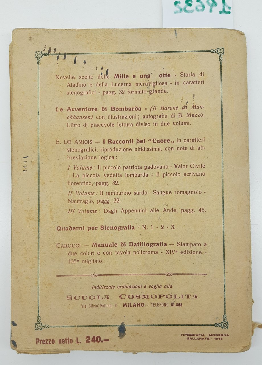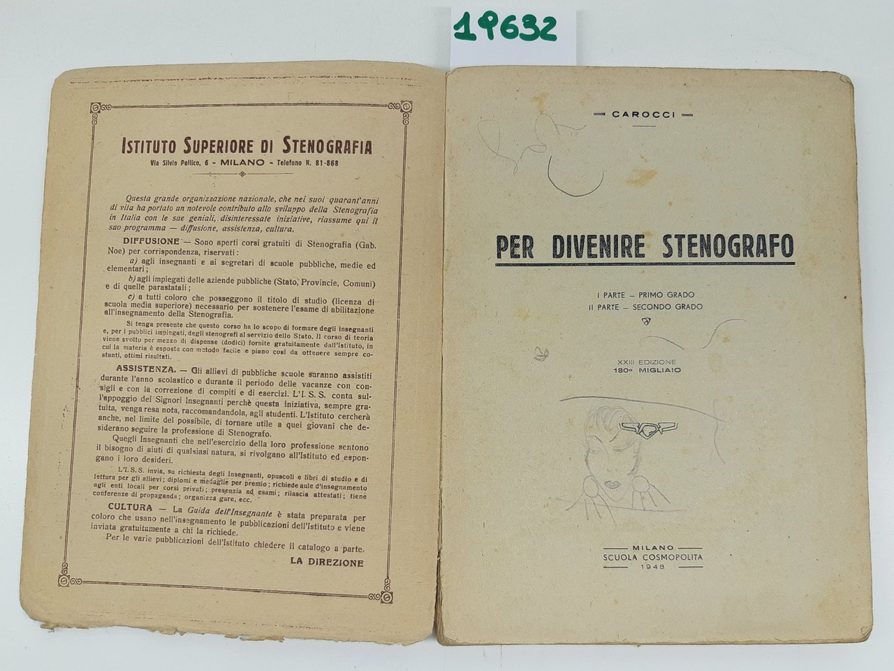 Carocci Per divenire e stenografo parte I e II XXIII° edizione 180º migliaio 1948 Scuola Cosmopolita