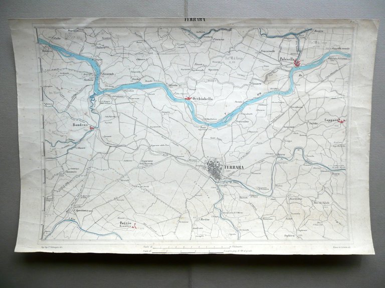 Carta Topografica Ferrara Occhiobello Bondeno Litografia Corbetta Milano 1870-80