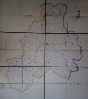 Sans lieu 1850 Vers 1850. Superbe carte monumentale entoilée manuscrite, encre et aquarelle, de 6 feuilles mesurant en totalité 1, 20 mêtre sur 1,32 mètre. Chaque feuille de 60 x 44 cm. L'ensemble replié dans un étui cartonné, titre sur une vignette contrecollée. Echelle de 23 dix millième de mètres pour 100 mètres. On notera une grande précision dans le dessin quant aux chemins vicinaux, à l'habitat, aux noms des Hameaux, Mas, Lieux dits, Riviéres ou Ruisseaux, Moulins ou Usines, Auberges, Relais de Poste, Eglises, Ponts, Ruines, Bergeries avec noms des propriétaires etc. Etui un peu frotté, vignette contrecollée tachée. Très bel état de la carte.
