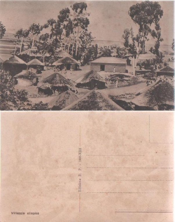 Cartolina - AOI. Villaggio etiopico. Non viaggiata, no riproduzione