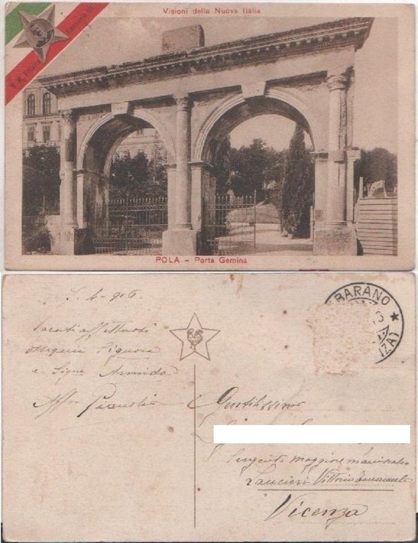 Cartolina - Pola. Porta Gemina - Viaggiata 1916